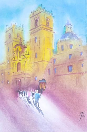 Acuarela Un paseo por la Valencia histórica. (impresión artística en alta definición) 30 copias